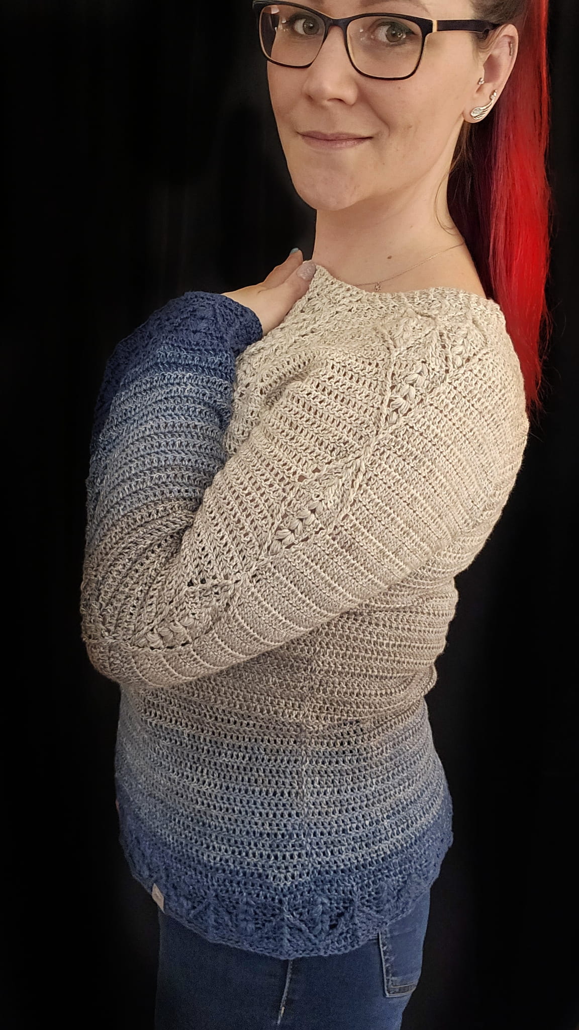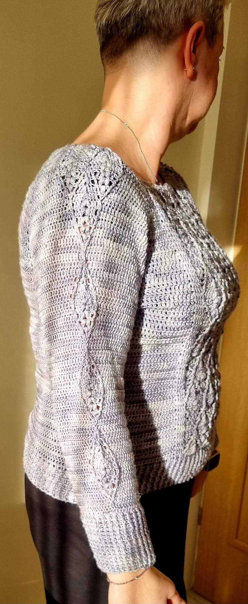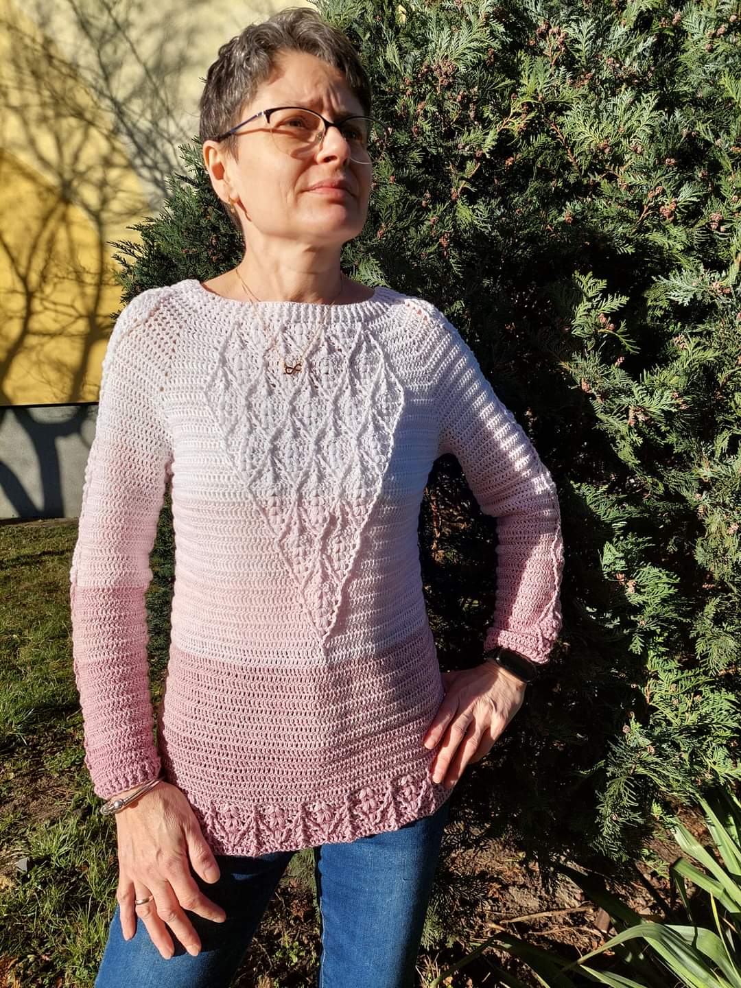 Sweterek możesz wykonać w kilku wersjach - z motywem w kształcie diamentu lub z prostym motywem na przodzie swetra. Dół i rękawy możesz wykończyć motywem ozdobnym, a nawet zrobić rozszerzane rękawy! - wybór należy do Ciebie!